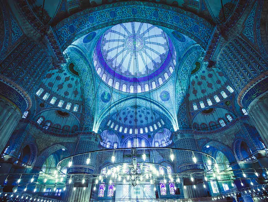 مسجد سلطان احمد مسجدی است که به دستور سلطان احمد و برای رقابت با مسجد ایاصوفیه استانبول ساخته شد و امروزه بسیاری از گردشگران برای تماشای انعکاس رنگ آبی آسمان بر بدنهی مسجد به استانبول سفر میکنند، داخل مسجد نیز با کاشیهای آبی مزین شده است.