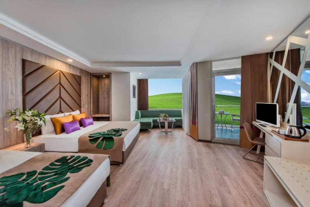 هتل دارای 9 طبقه و 835 اتاق میباشد و با دسترسی خصوصی به ساحل شنی لارا باعث شده تا یکی از محبوب ترین هتلهای آنتالیا باشد. این هتل با استخر های بزرگ و باغ های باشکوه احاطه شده است که همین امر باعث شده تا به جذابیت هر چه بیشتر آن بیفزاید. و اتاق هایی با چیدمان لوکس دارد، که برخی از این اتاقها دارای بالکن با چشم انداز دریای مدیترانه است که علاقمندان زیادی را به خود جذب میکند.
