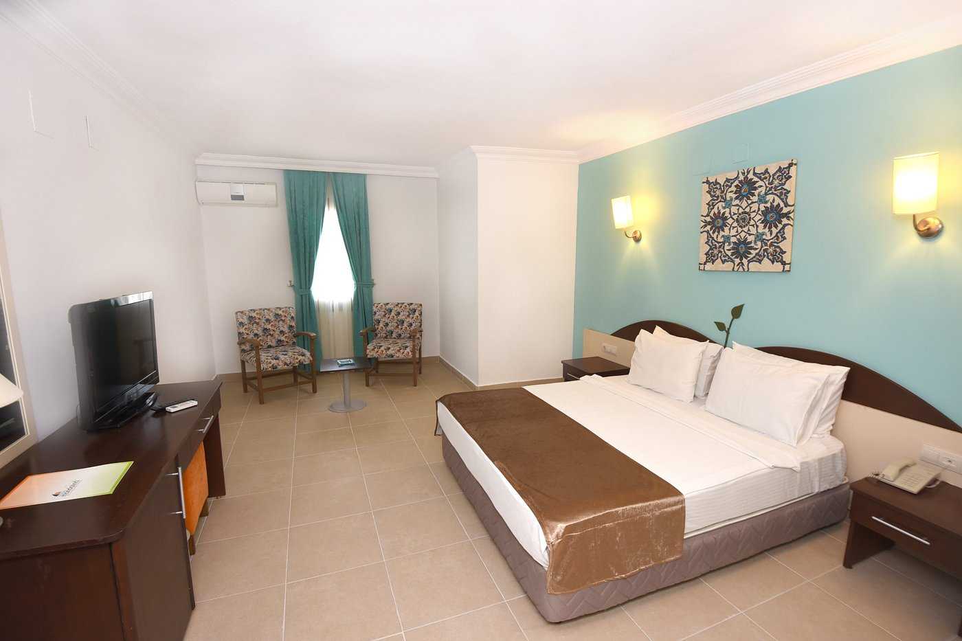 این هتل زیبا در سال 2011 به بهره برداری رسید و 125 اتاق دارد که شامل انوع اتاق های استاندارد ، سوئیت جونیور و دلوکس تقسیم می شود. هر اتاق دارای بالکن اختصاصی است که برخی از آنها رو به دریا میباشند. اتاق های اتاقهای هتل با رنگهای سفید و فیروزهای به خوبی توانستهاند سادگی و زیبایی محیط اطراف خود را به نمایش بگذارند.. همچنین کلیه اتاقها مجهز به حمام به همراه حوله، سشوار و لوازم بهداشتی رایگان، تلفن ، مینی بار ، سیستم تهویه مطبوع ، صندوق امانات ، قهوه ساز و کتری برقی میباشند.